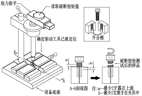 公称直径为M1~M68,性能等级为8.8级~12.9级(GB/T3098.1)的螺栓与螺钉的破坏扭矩值。适用于规格d<M3,在GB/T3098.1中未规定最小拉力载荷与保证载荷的螺栓与螺钉;以及长度太短(L<2.5d)而不能实施拉力试验的螺栓与螺钉,不适用紧定螺钉。